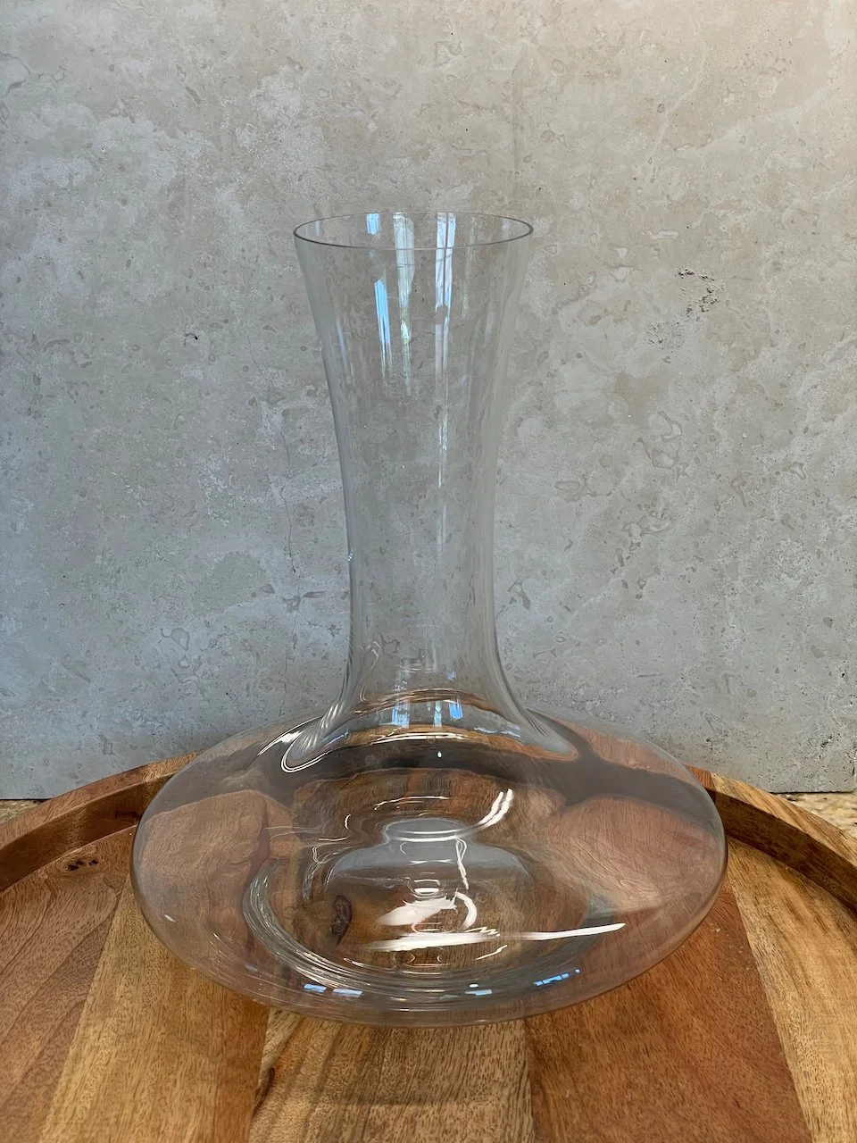 But to really give a bottle of wine a chance to breathe, you’ll need some type of decanter that allows the wine to spread out and have a lot of surface area in contact with air. The wide-base decanter pictured here is a great example. And, it’s designed such that a single bottle of wine just fills the bottom and allows for the maximum amount of the wine’s surface area to be exposed to air.