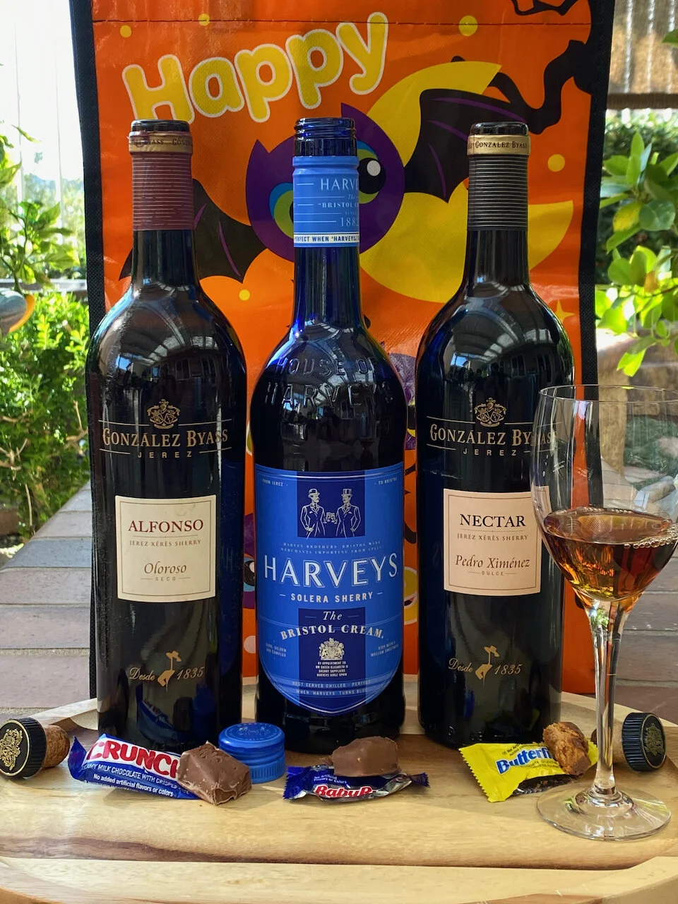 Well, it’s Halloween time and that means candy. Lots of candy! And I suggest pairing that candy with Sherry. So, I gathered up three nice bottles of Sherry and a bunch of candy and went to work!
